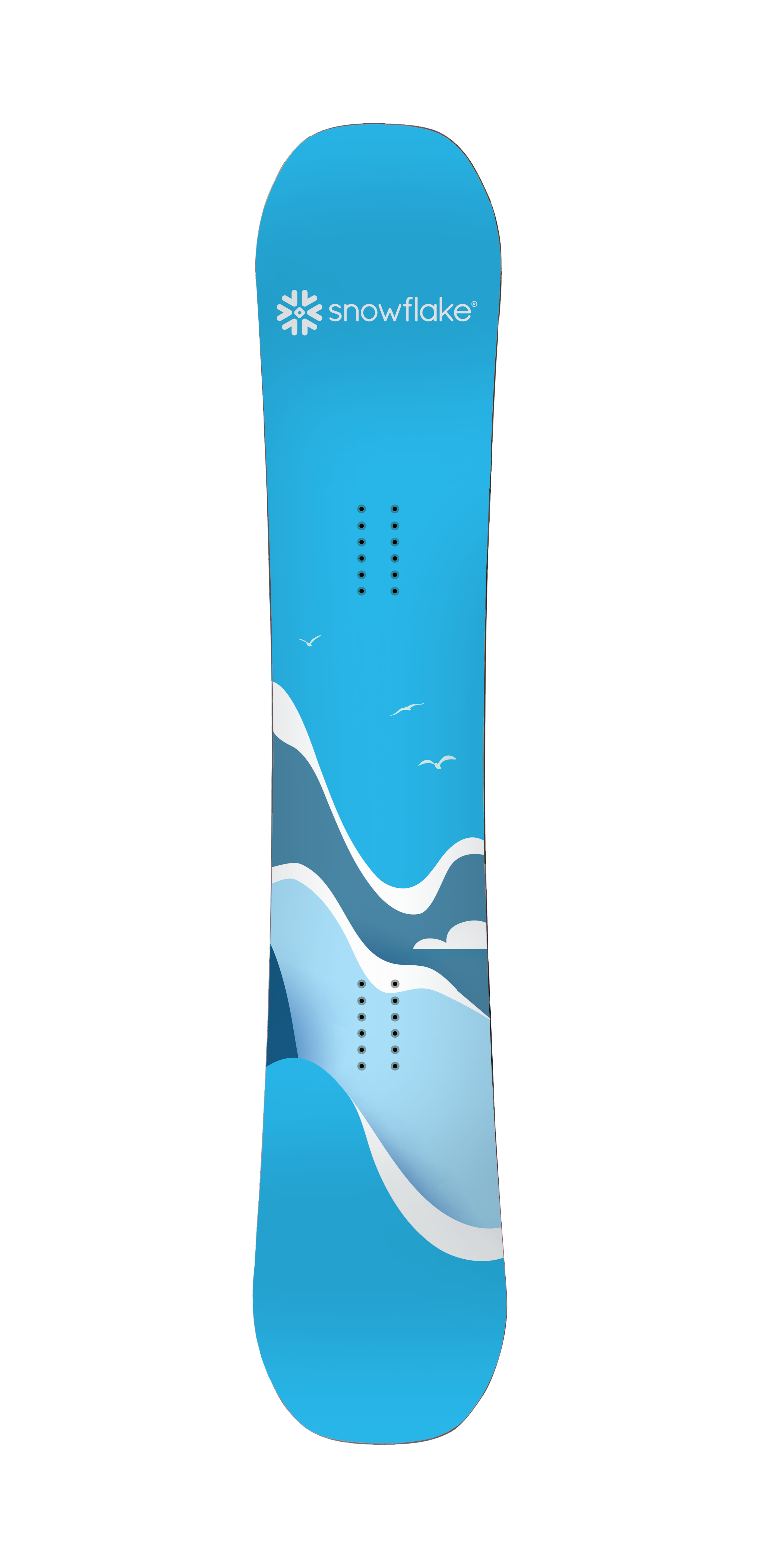 The snowboard features a classic camber design. Its core is constructed using a splicing technique with poplar, resulting in a lightweight board. It incorporates a twin-tip design, characterized by a thin center, thick sides, and a slim nose and tail, which facilitates easier cutting into the snow, mastery of snowboarding skills, and effortless turning. A fiberglass block at the binding position enhances stability. This model, known as the “Snowy Fairy,” is versatile across all types of terrain.